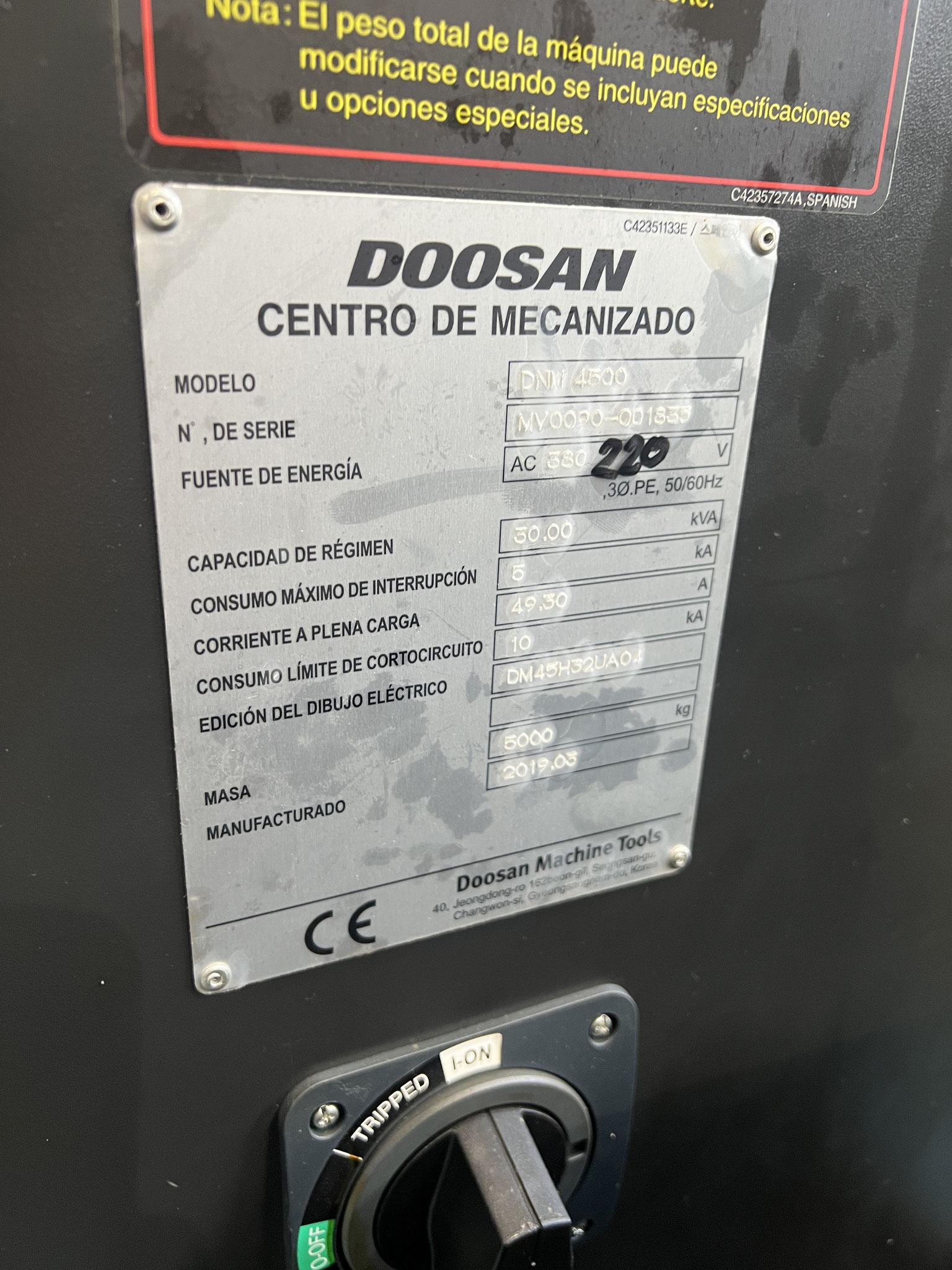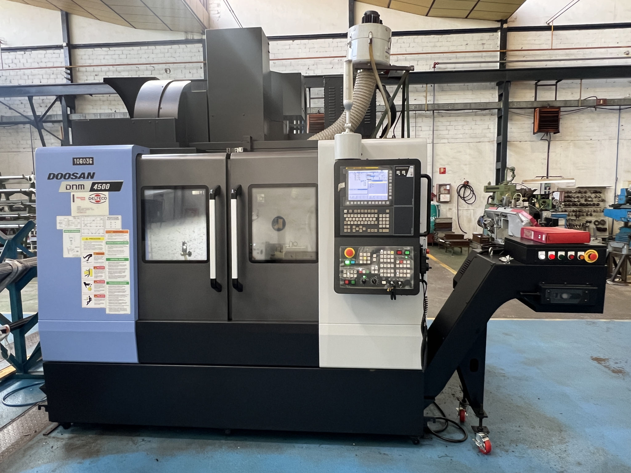 Used machining center Doosan DNM 4500 for sale, located in our warehouse in Itziar( Guipuzcoa). It has been overhouled by our technical experts in used machining centers Doosan.